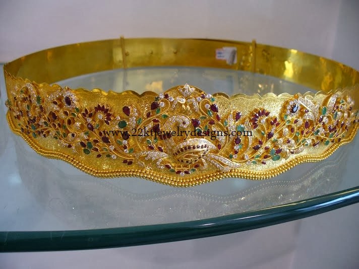Peacock design jewelry is new Trend. This Vaddanam is specially focusing on Peacock design at the center of the gold waist belt and rest of the gold belt is polished so that you can add any design around the sides of the belt. This Vaddanam looks amazing !